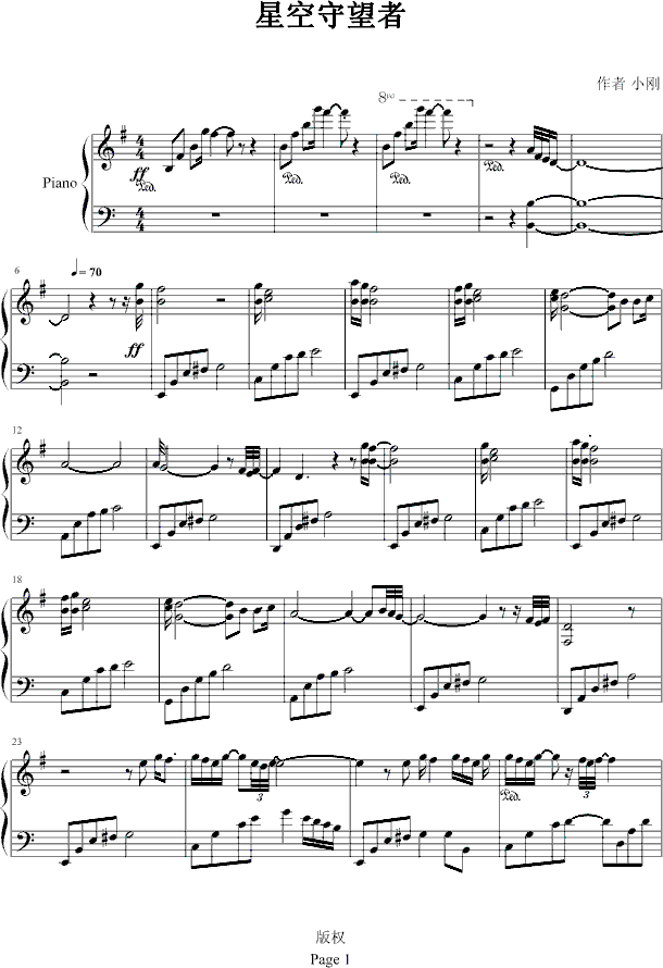 星空守望者修改版免费钢琴谱_五线谱:小刚 点击: 1000 图片可能经过缩放,手机长按或点开后长按保存,电脑鼠标右键保存.