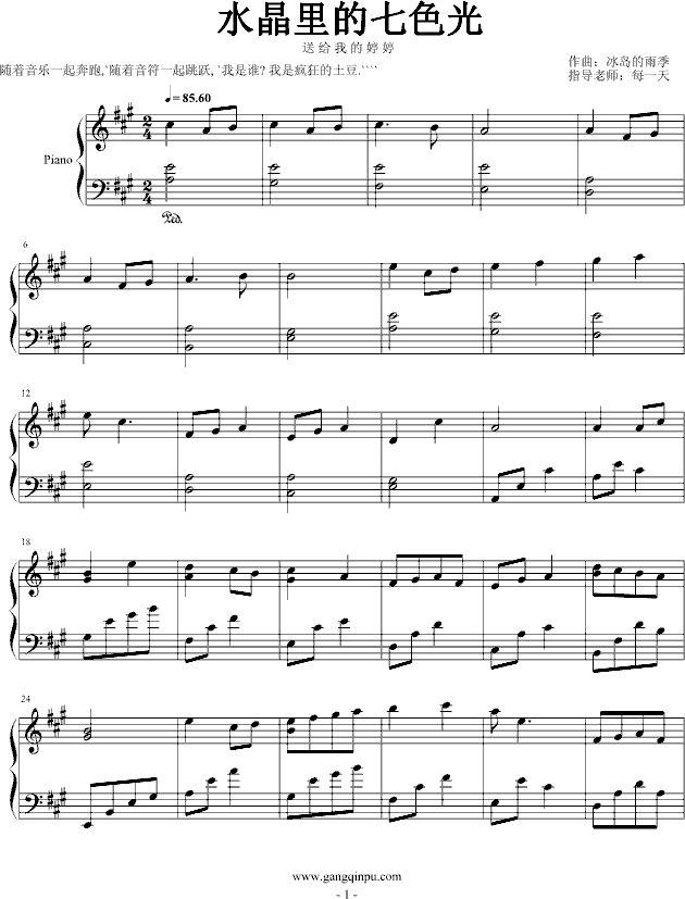 水晶里的七色光免费钢琴谱_五线谱:未知 点击: 1000 图片可能经过缩放,手机长按或点开后长按保存,电脑鼠标右键保存.