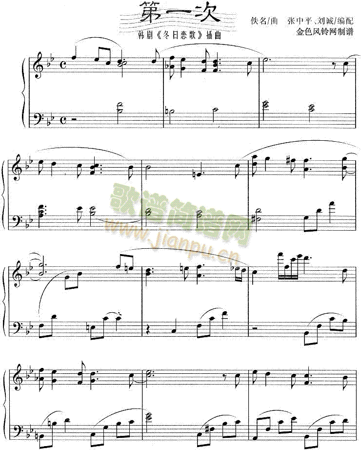 第一次(韩剧《冬日恋歌》插曲)免费钢琴谱_五线谱: 点击: 1000 图片可能经过缩放,手机长按或点开后长按保存,电脑鼠标右键保存.