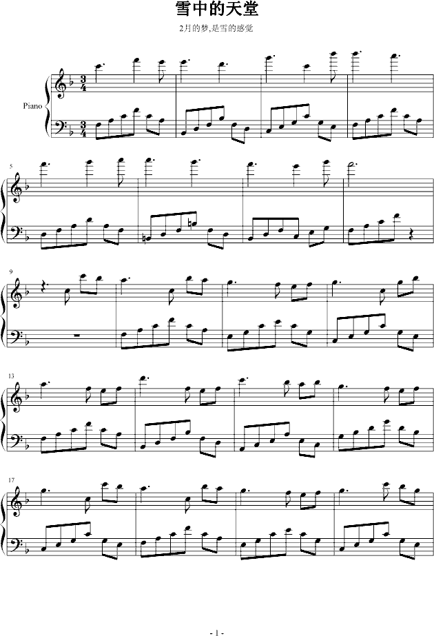 雪中的天堂免费钢琴谱_五线谱/词曲:ミ枷、鎖ミ枷、鎖点击: 1000 图片可能经过缩放,手机长按或点开后长按保存,电脑鼠标右键保存.