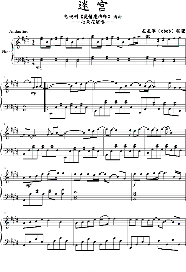 迷宫-《爱情魔法师》插曲免费钢琴谱_五线谱:影视 点击: 1000 图片可能经过缩放,手机长按或点开后长按保存,电脑鼠标右键保存.