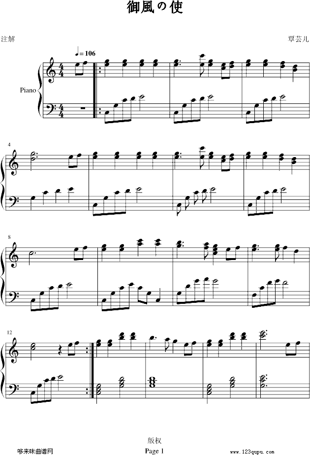 御风使)-覃芸儿免费钢琴谱_五线谱:未知 点击: 1000 图片可能经过缩放,手机长按或点开后长按保存,电脑鼠标右键保存.