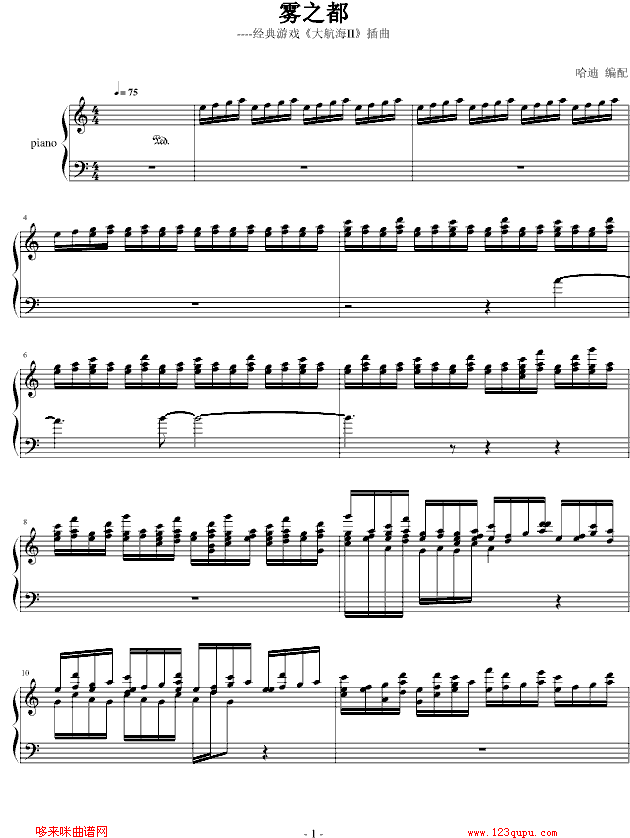 雾之都-大航海II经典插曲-游戏免费钢琴谱_五线谱:未知 点击: 1000 图片可能经过缩放,手机长按或点开后长按保存,电脑鼠标右键保存.