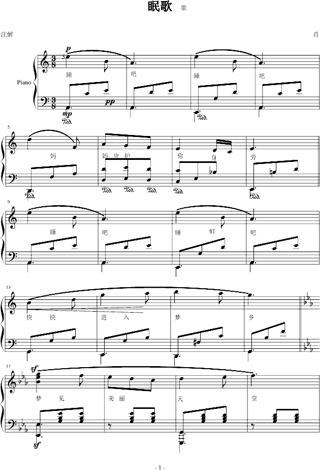 眠歌免费钢琴谱_五线谱/词曲:塞外孤笛塞外孤笛点击: 1000 图片可能经过缩放,手机长按或点开后长按保存,电脑鼠标右键保存.
