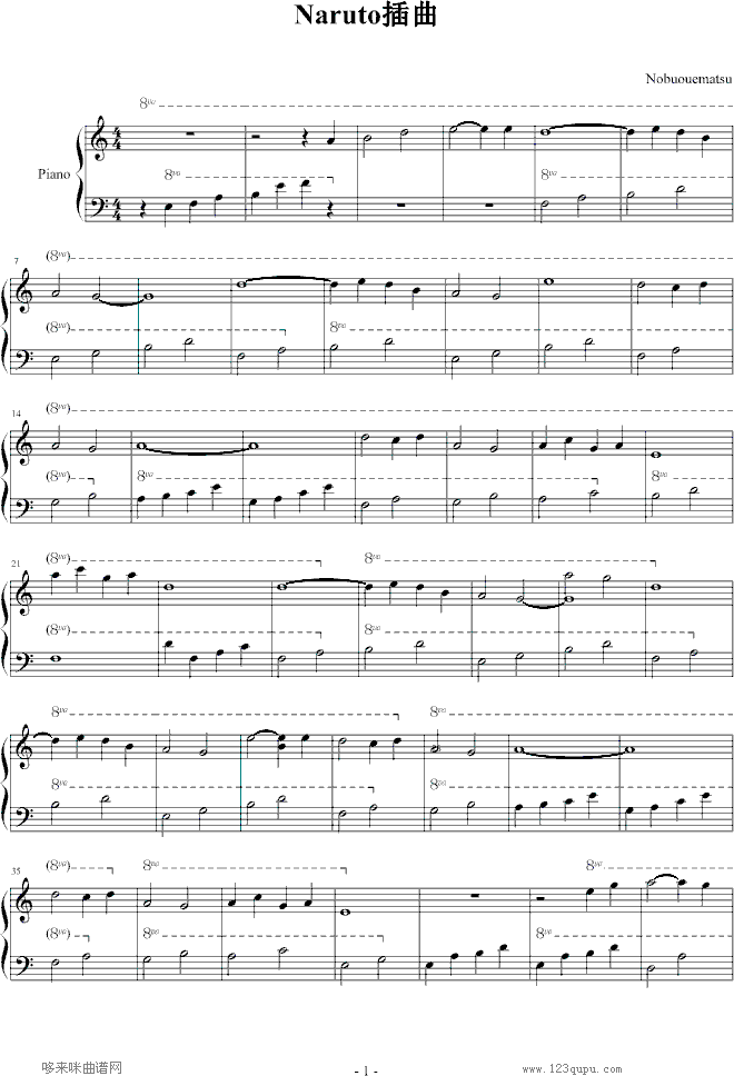 Naruto插曲-火影忍者免费钢琴谱_五线谱:未知 点击: 1000 图片可能经过缩放,手机长按或点开后长按保存,电脑鼠标右键保存.