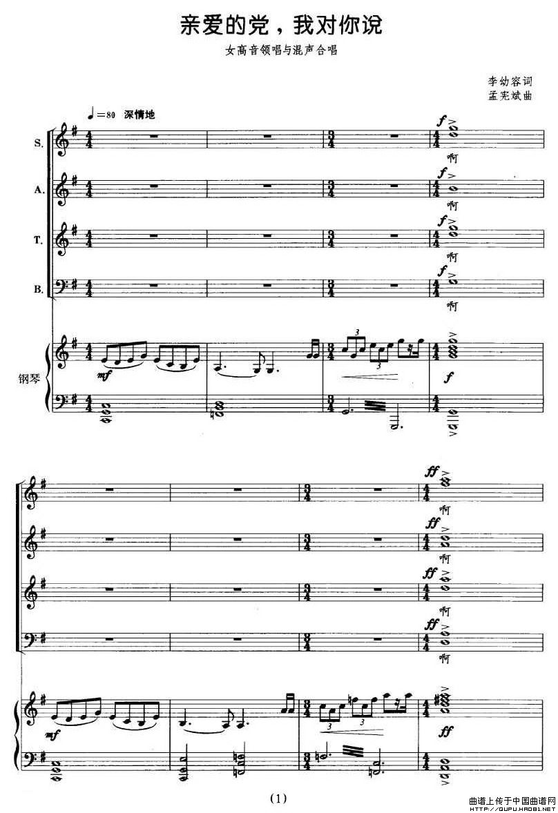 亲爱的党,我对你说免费钢琴谱_五线谱:作词:李幼容作曲:孟宪斌 点击: 1000 图片可能经过缩放,手机长按或点开后长按保存,电脑鼠标右键保存.