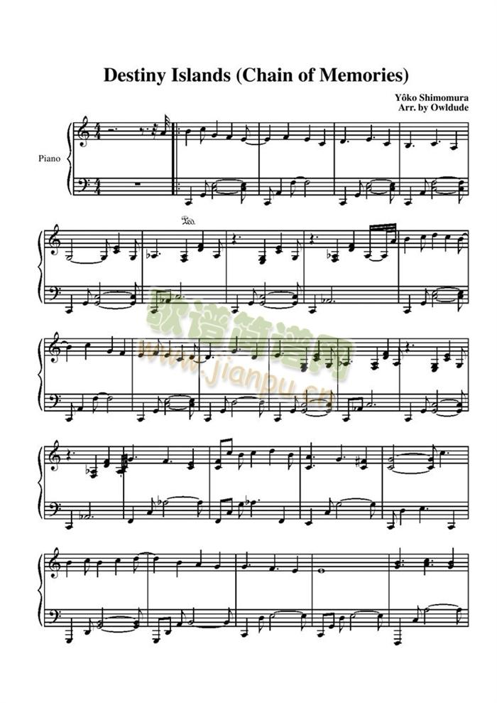 Destiny Islands免费钢琴谱_五线谱: 点击: 1000 图片可能经过缩放,手机长按或点开后长按保存,电脑鼠标右键保存.