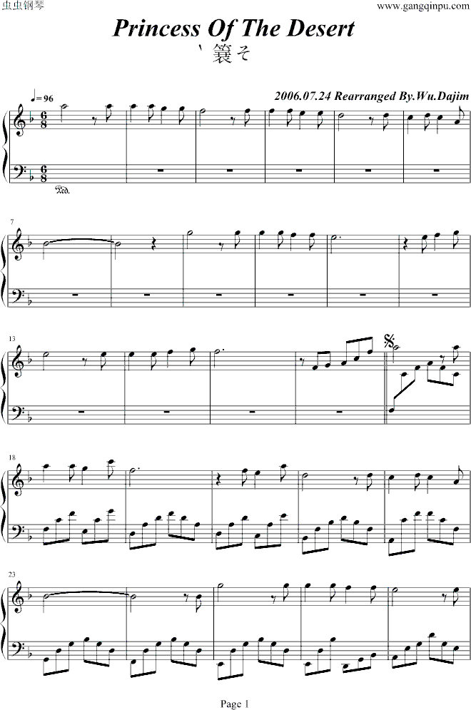 沙漠公主-Princess Of The Desert免费钢琴谱_五线谱:克莱德曼 点击: 1000 图片可能经过缩放,手机长按或点开后长按保存,电脑鼠标右键保存.