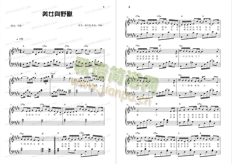 美女与野兽免费钢琴谱_五线谱:未知 点击: 1000 图片可能经过缩放,手机长按或点开后长按保存,电脑鼠标右键保存.