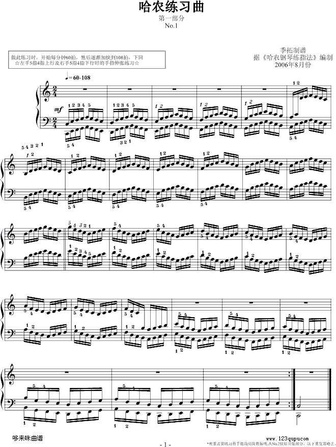 哈农指法练习1-我学钢琴-哈农免费钢琴谱_五线谱:未知 点击: 1000 图片可能经过缩放,手机长按或点开后长按保存,电脑鼠标右键保存.