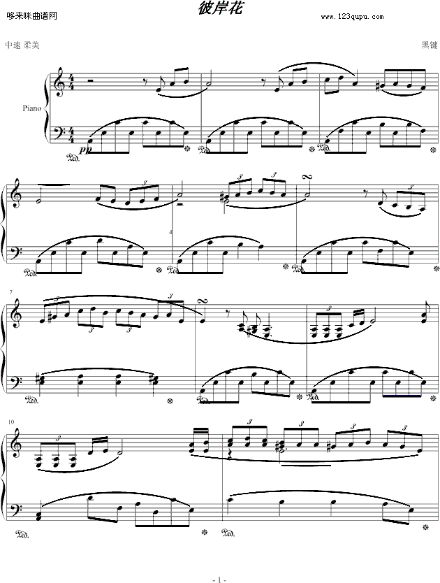 彼岸花-黑键免费钢琴谱_五线谱:未知 点击: 1000 图片可能经过缩放,手机长按或点开后长按保存,电脑鼠标右键保存.