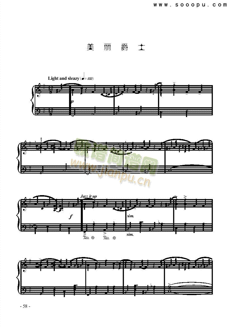 美丽爵士 键盘类 钢琴免费钢琴谱_五线谱:爵士钢琴 点击: 1000 图片可能经过缩放,手机长按或点开后长按保存,电脑鼠标右键保存.