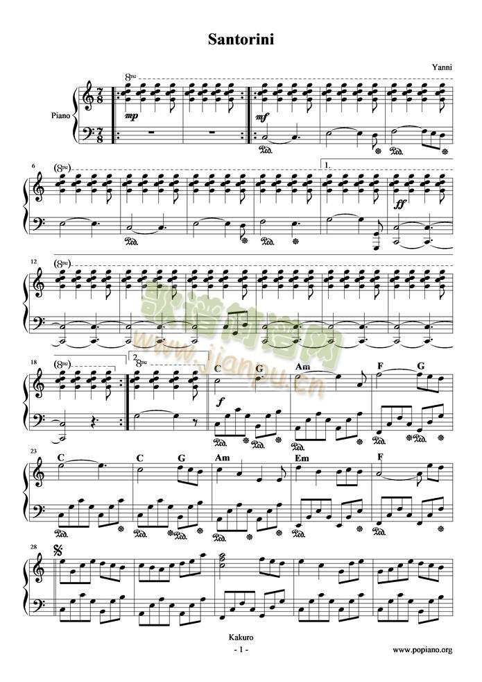 Santorini免费钢琴谱_五线谱: 点击: 1000 图片可能经过缩放,手机长按或点开后长按保存,电脑鼠标右键保存.