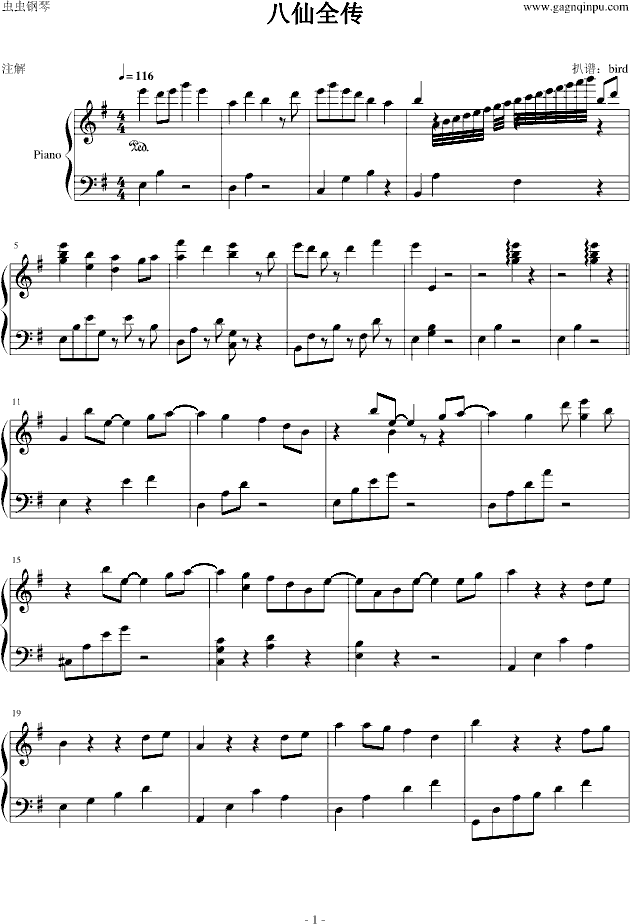 八仙全传-钢琴谱(钢琴曲)-影视免费钢琴谱_五线谱: 点击: 1000 图片可能经过缩放,手机长按或点开后长按保存,电脑鼠标右键保存.