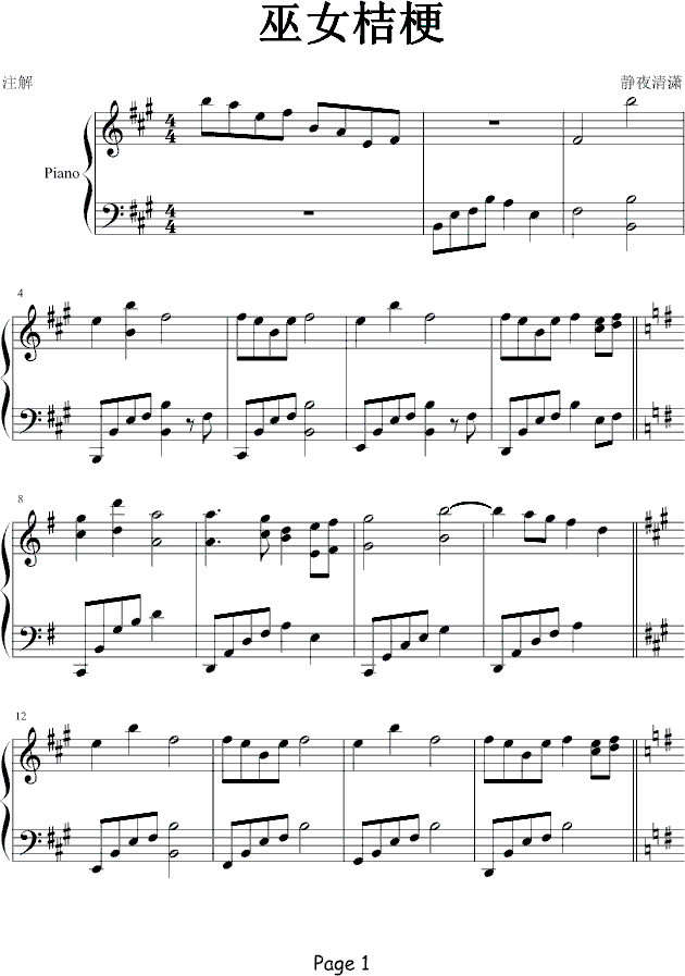 巫女桔梗免费钢琴谱_五线谱:犬夜叉 点击: 1000 图片可能经过缩放,手机长按或点开后长按保存,电脑鼠标右键保存.