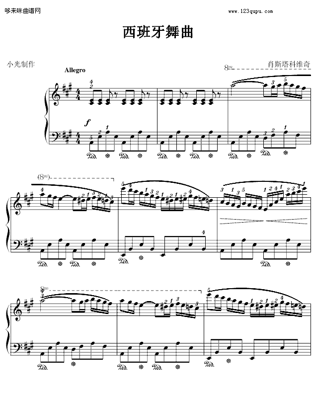 西班牙舞曲-小光版-肖斯塔科维奇免费钢琴谱_五线谱:未知 点击: 1000 图片可能经过缩放,手机长按或点开后长按保存,电脑鼠标右键保存.