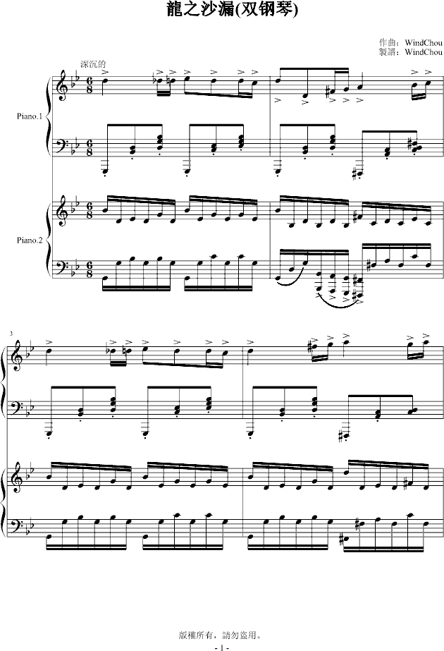 龙之沙漏(双钢琴斗琴版)-钢琴谱(钢琴曲)-小爱克免费钢琴谱_五线谱: 点击: 1000 图片可能经过缩放,手机长按或点开后长按保存,电脑鼠标右键保存.