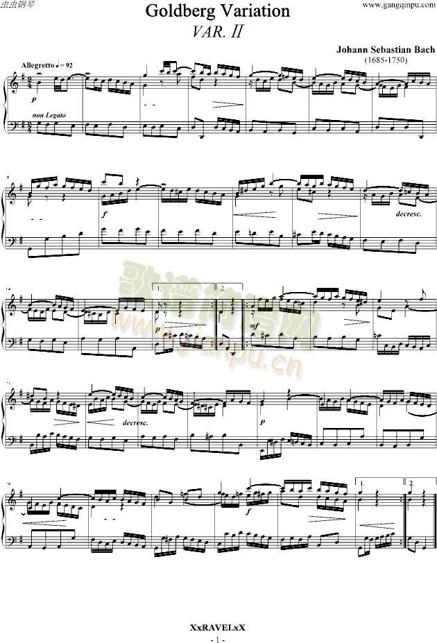 哥德堡变奏曲-Var.2免费钢琴谱_五线谱:巴赫 点击: 1000 图片可能经过缩放,手机长按或点开后长按保存,电脑鼠标右键保存.