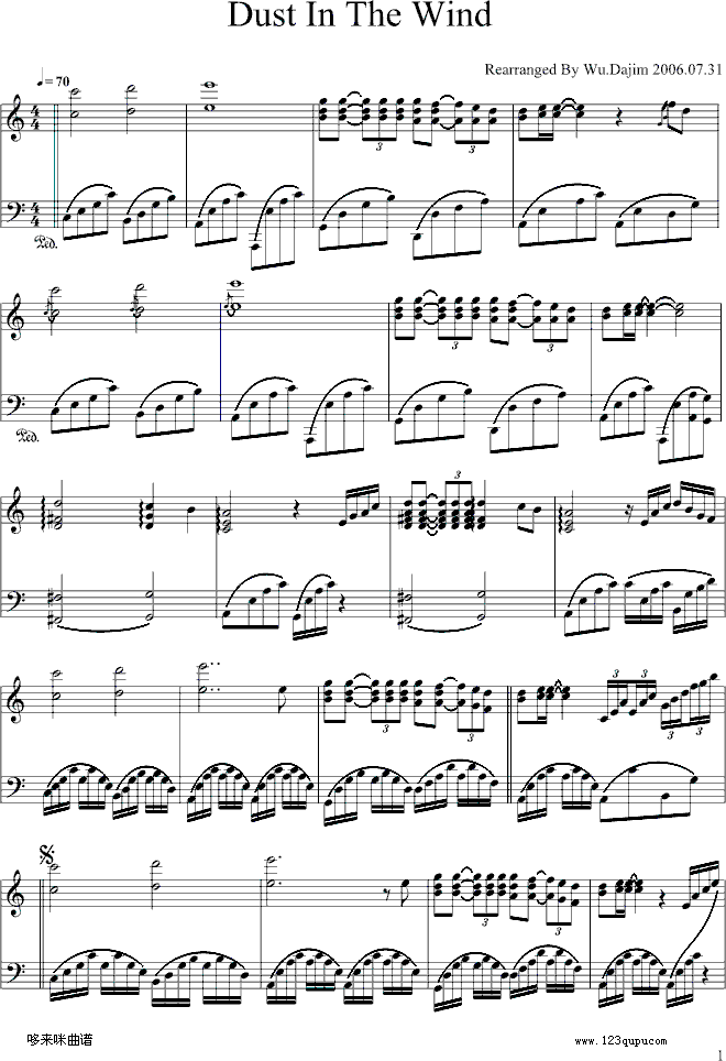 風中之塵-克莱德曼免费钢琴谱_五线谱:未知 点击: 1000 图片可能经过缩放,手机长按或点开后长按保存,电脑鼠标右键保存.