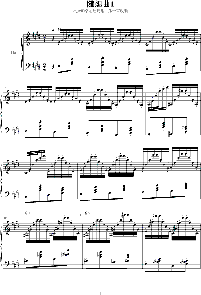 随想曲No.1免费钢琴谱_五线谱:帕格尼尼 点击: 1000 图片可能经过缩放,手机长按或点开后长按保存,电脑鼠标右键保存.