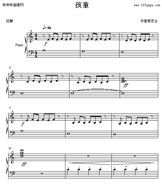 孩童-紫百合免费钢琴谱_五线谱:未知 点击: 1000 图片可能经过缩放,手机长按或点开后长按保存,电脑鼠标右键保存.