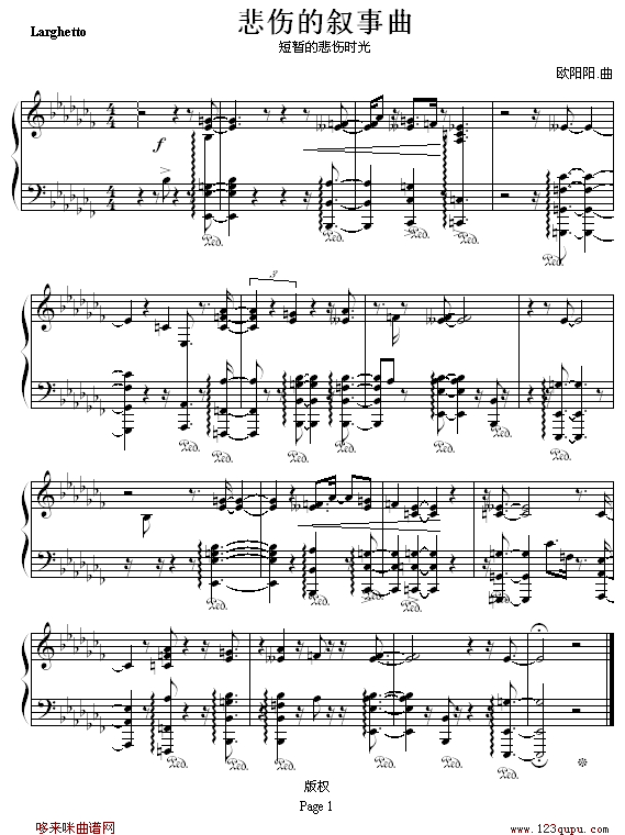 悲伤的叙事曲-欧阳阳.免费钢琴谱_五线谱:未知 点击: 1000 图片可能经过缩放,手机长按或点开后长按保存,电脑鼠标右键保存.