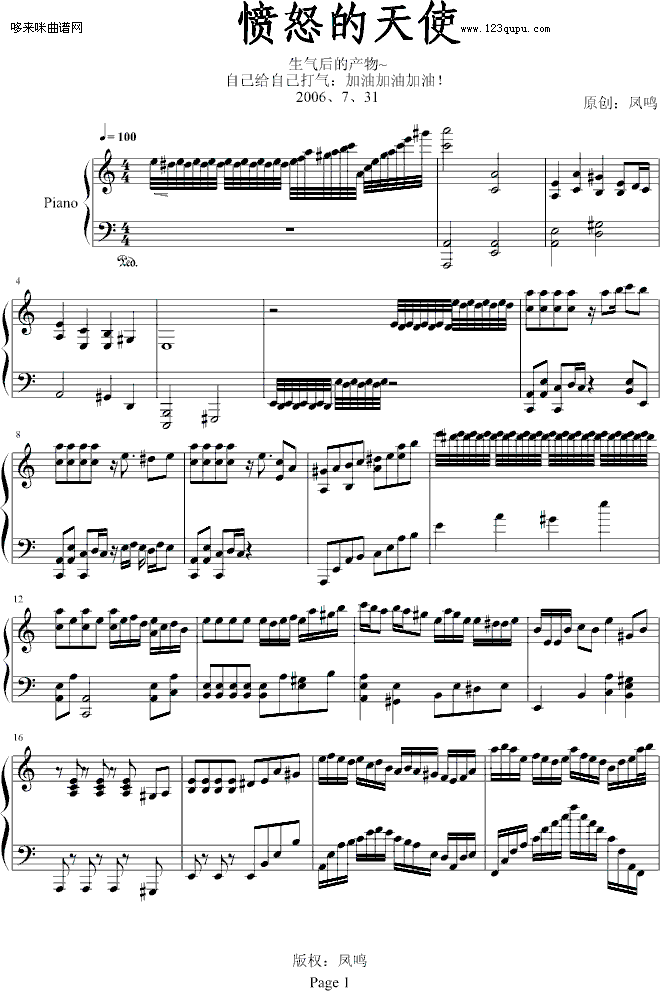 愤怒的天使-凤鸣免费钢琴谱_五线谱:未知 点击: 1000 图片可能经过缩放,手机长按或点开后长按保存,电脑鼠标右键保存.