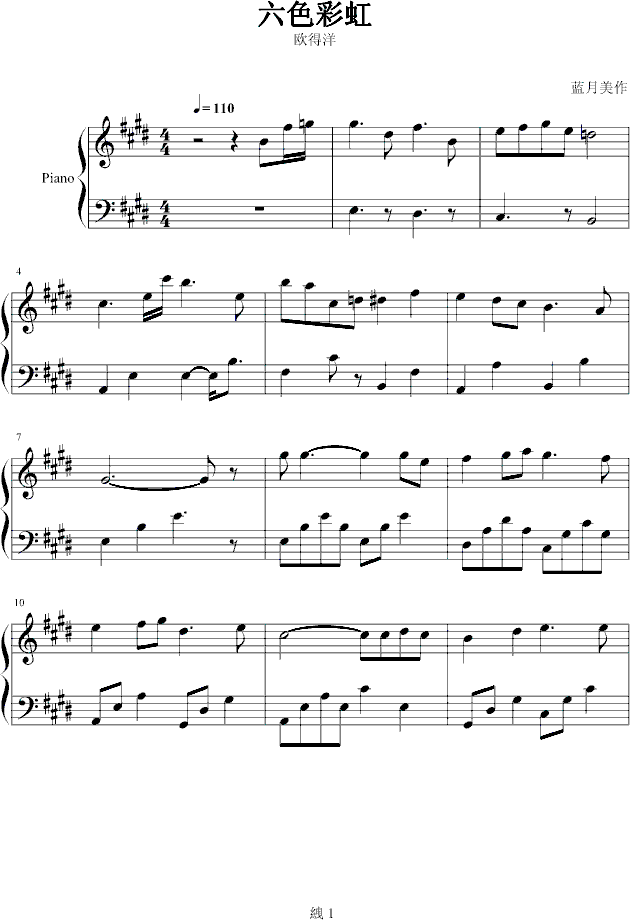 六色彩虹免费钢琴谱_五线谱:欧得洋 点击: 1000 图片可能经过缩放,手机长按或点开后长按保存,电脑鼠标右键保存.