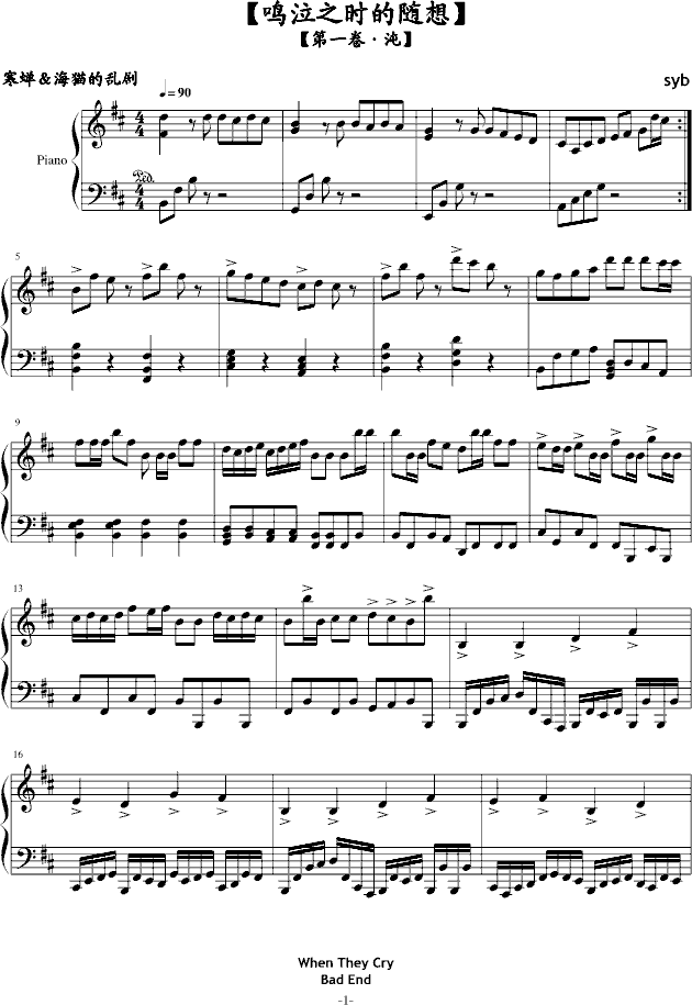 鸣泣之时的随想-钢琴谱(钢琴曲)-syb免费钢琴谱_五线谱: 点击: 1000 图片可能经过缩放,手机长按或点开后长按保存,电脑鼠标右键保存.