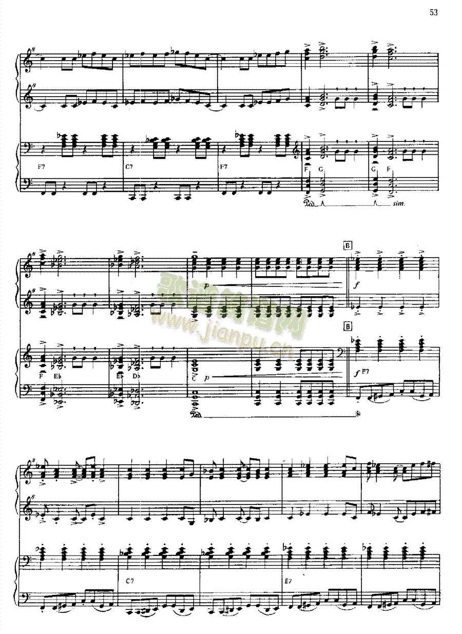 耶鲁摇滚 键盘类 钢琴免费钢琴谱_五线谱:爵士钢琴 点击: 1000 图片可能经过缩放,手机长按或点开后长按保存,电脑鼠标右键保存.