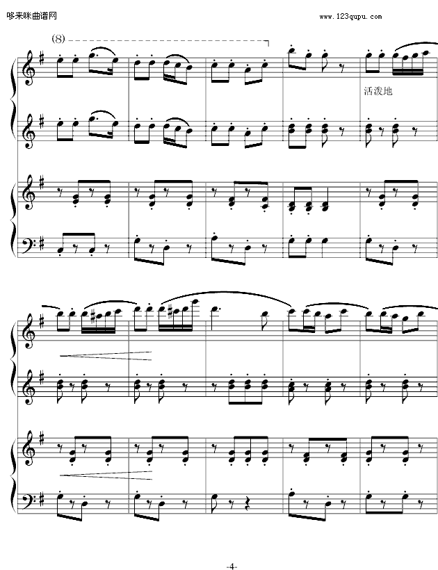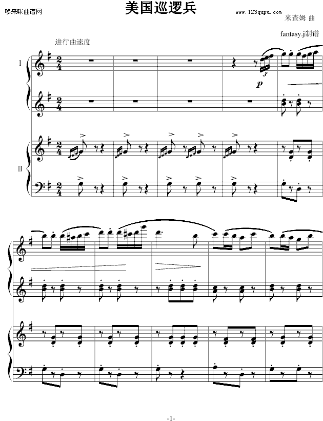 巡逻兵进行曲- 四手联弹-弗兰克·米查姆免费钢琴谱_五线谱:未知 点击: 1000 图片可能经过缩放,手机长按或点开后长按保存,电脑鼠标右键保存.