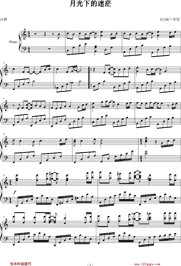 月光下的迷茫-琴☆归宿免费钢琴谱_五线谱:未知 点击: 1000 图片可能经过缩放,手机长按或点开后长按保存,电脑鼠标右键保存.
