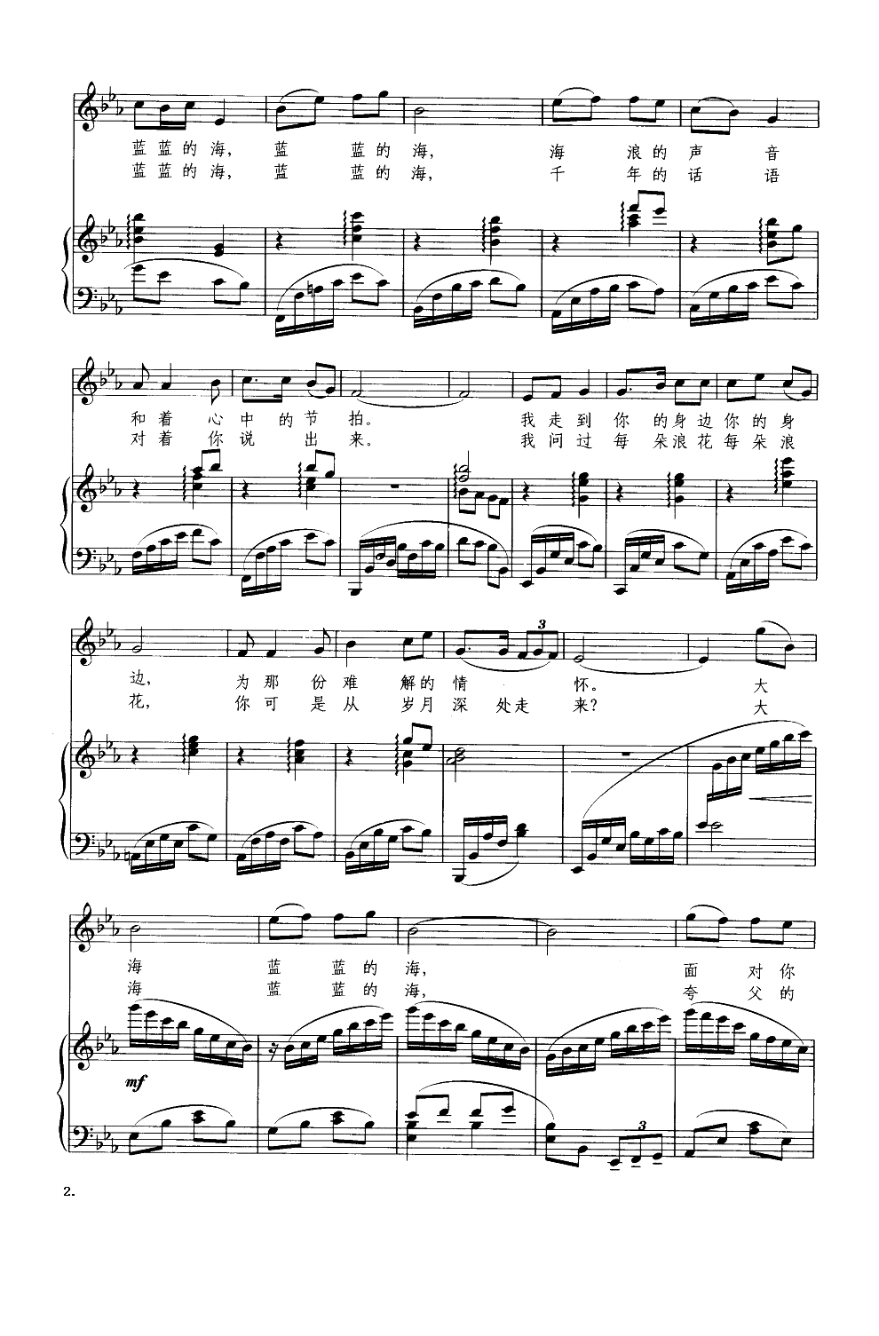 说给大海听(钢琴伴奏谱)免费钢琴谱_五线谱: 点击: 1000 图片可能经过缩放,手机长按或点开后长按保存,电脑鼠标右键保存.
