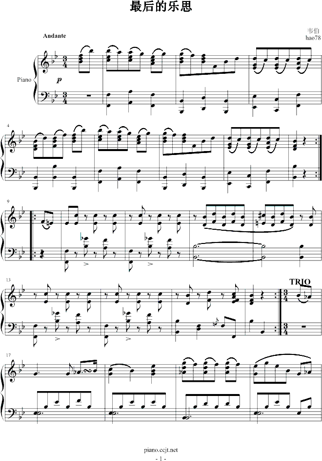 最后的乐思免费钢琴谱_五线谱:韦伯 点击: 1000 图片可能经过缩放,手机长按或点开后长按保存,电脑鼠标右键保存.