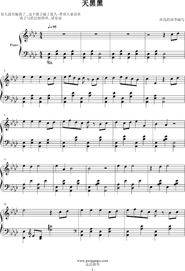 天黑黑-冰岛的雨季免费钢琴谱_五线谱:孙燕姿 点击: 1000 图片可能经过缩放,手机长按或点开后长按保存,电脑鼠标右键保存.