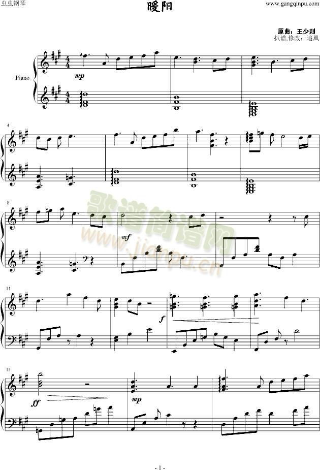 暖阳免费钢琴谱_五线谱:动漫影视 点击: 1000 图片可能经过缩放,手机长按或点开后长按保存,电脑鼠标右键保存.