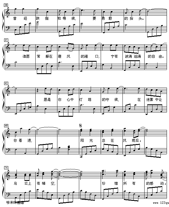 阳光总在风雨后-许美静免费钢琴谱_五线谱:未知 点击: 1000 图片可能经过缩放,手机长按或点开后长按保存,电脑鼠标右键保存.