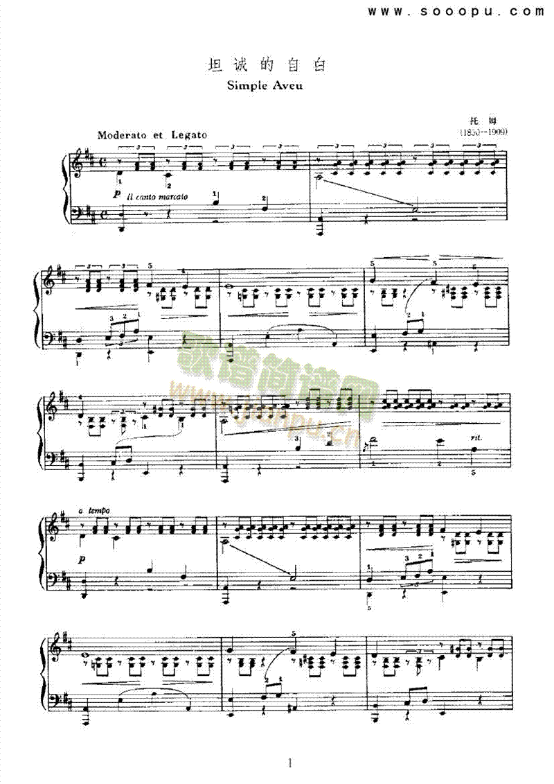 坦诚的自白 键盘类 钢琴免费钢琴谱_五线谱:托姆 点击: 1000 图片可能经过缩放,手机长按或点开后长按保存,电脑鼠标右键保存.