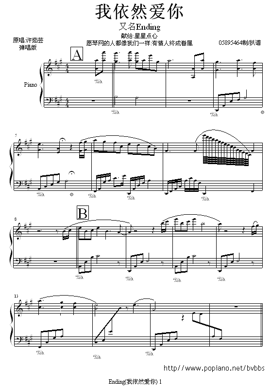 我依然爱你 - Ending免费钢琴谱_五线谱:许茹芸 点击: 1000 图片可能经过缩放,手机长按或点开后长按保存,电脑鼠标右键保存.
