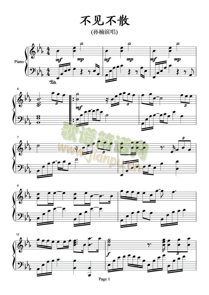 不见不散.免费钢琴谱_五线谱:孙楠 点击: 1000 图片可能经过缩放,手机长按或点开后长按保存,电脑鼠标右键保存.