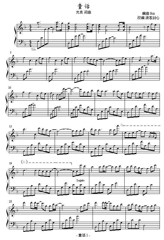 童话-浪客剑心版(演奏版)免费钢琴谱_五线谱:光良 点击: 1000 图片可能经过缩放,手机长按或点开后长按保存,电脑鼠标右键保存.
