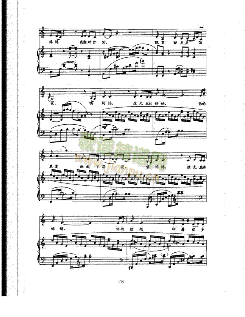 烛光里的妈妈 歌曲类 钢琴伴奏谱免费钢琴谱_五线谱:谷建芬 点击: 1000 图片可能经过缩放,手机长按或点开后长按保存,电脑鼠标右键保存.