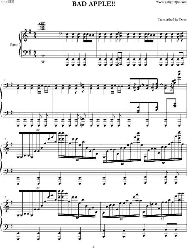 Bad Apple!!-钢琴谱(钢琴曲)-东方project免费钢琴谱_五线谱: 点击: 1000 图片可能经过缩放,手机长按或点开后长按保存,电脑鼠标右键保存.