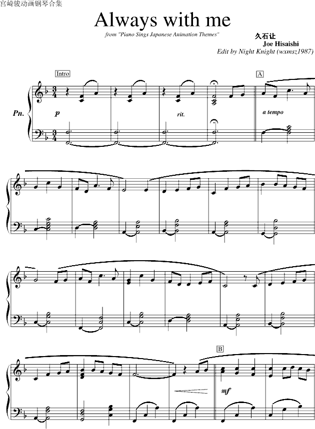 Always with me免费钢琴谱_五线谱:未知 点击: 1000 图片可能经过缩放,手机长按或点开后长按保存,电脑鼠标右键保存.
