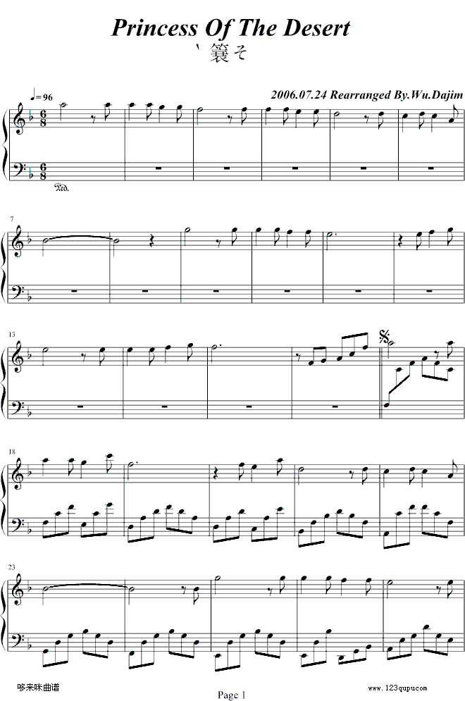沙漠公主-Princess Of The Desert-克莱德曼免费钢琴谱_五线谱:未知 点击: 1000 图片可能经过缩放,手机长按或点开后长按保存,电脑鼠标右键保存.