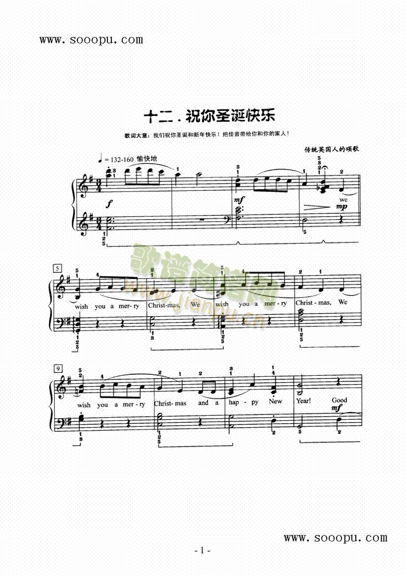 祝你圣诞快乐 键盘类 钢琴免费钢琴谱_五线谱:民歌 点击: 1000 图片可能经过缩放,手机长按或点开后长按保存,电脑鼠标右键保存.