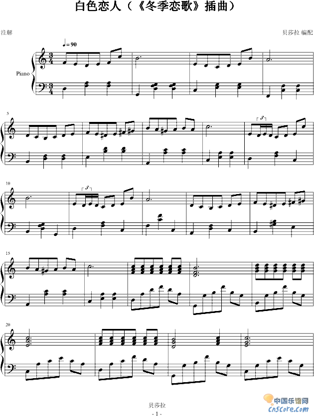 白色恋人-贝莎拉版-冬季恋歌免费钢琴谱_五线谱:游鸿明 点击: 1000 图片可能经过缩放,手机长按或点开后长按保存,电脑鼠标右键保存.