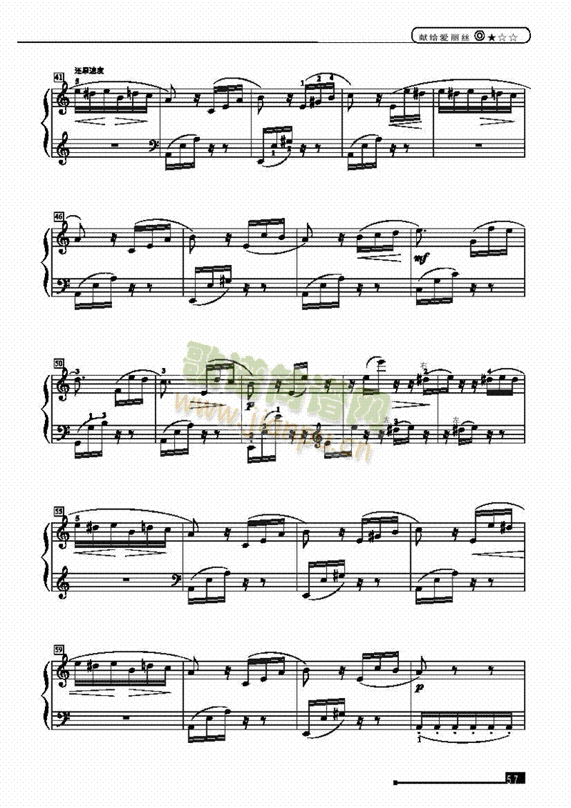 献给爱丽丝—简易版 键盘类 钢琴免费钢琴谱_五线谱:贝多芬 点击: 1000 图片可能经过缩放,手机长按或点开后长按保存,电脑鼠标右键保存.