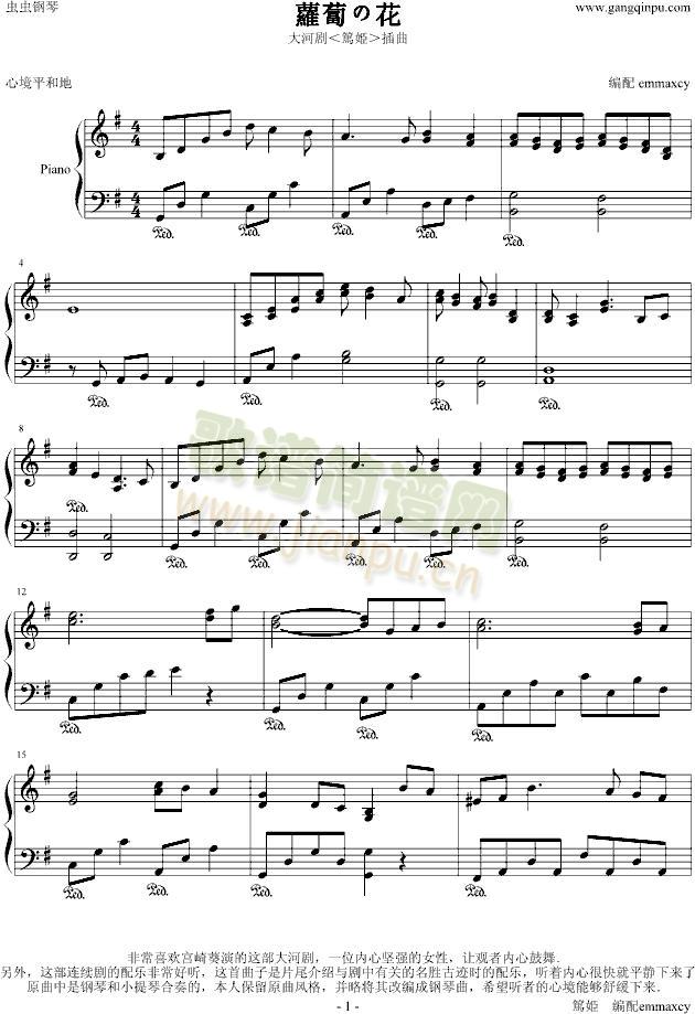 蘿蔔の花-大河剧(篤姫)插曲免费钢琴谱_五线谱:动漫影视 点击: 1000 图片可能经过缩放,手机长按或点开后长按保存,电脑鼠标右键保存.