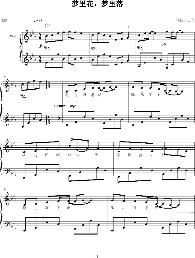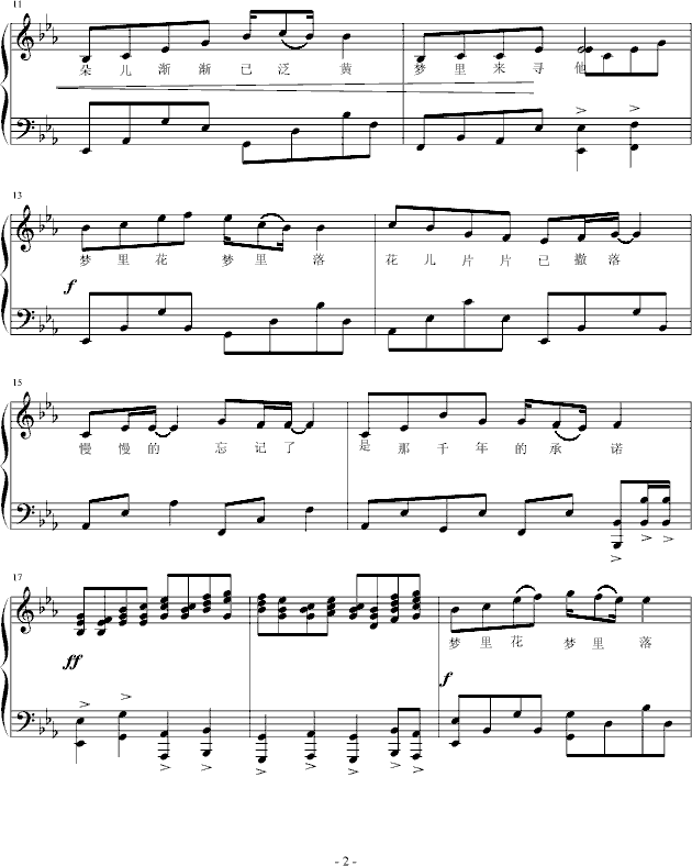 梦里花,梦里落-钢琴谱(钢琴曲)-重新爱过免费钢琴谱_五线谱: 点击: 1000 图片可能经过缩放,手机长按或点开后长按保存,电脑鼠标右键保存.